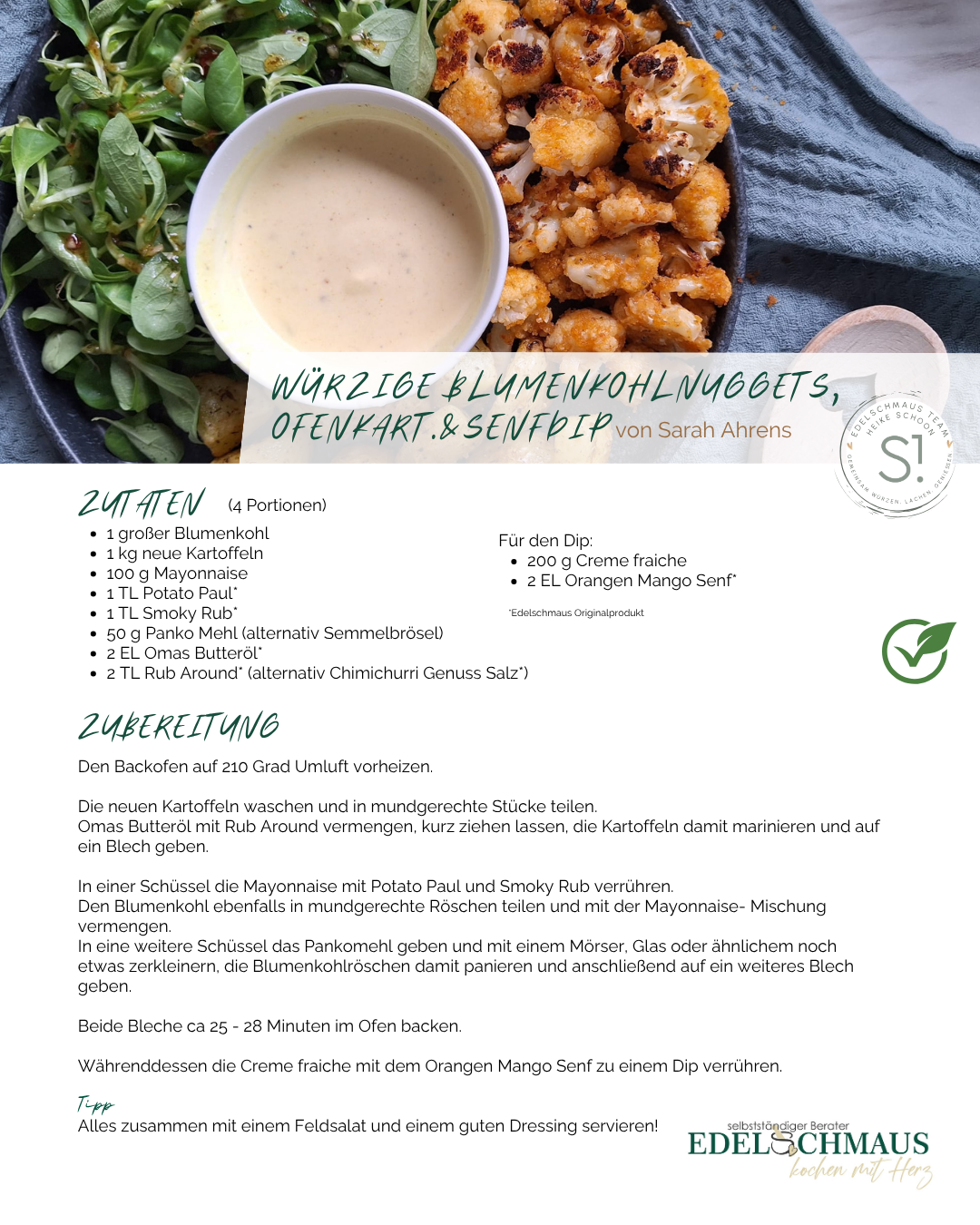 Währenddessen die Crème fraîche mit dem Orangen Mango Senf zu einem Dip verrühren.